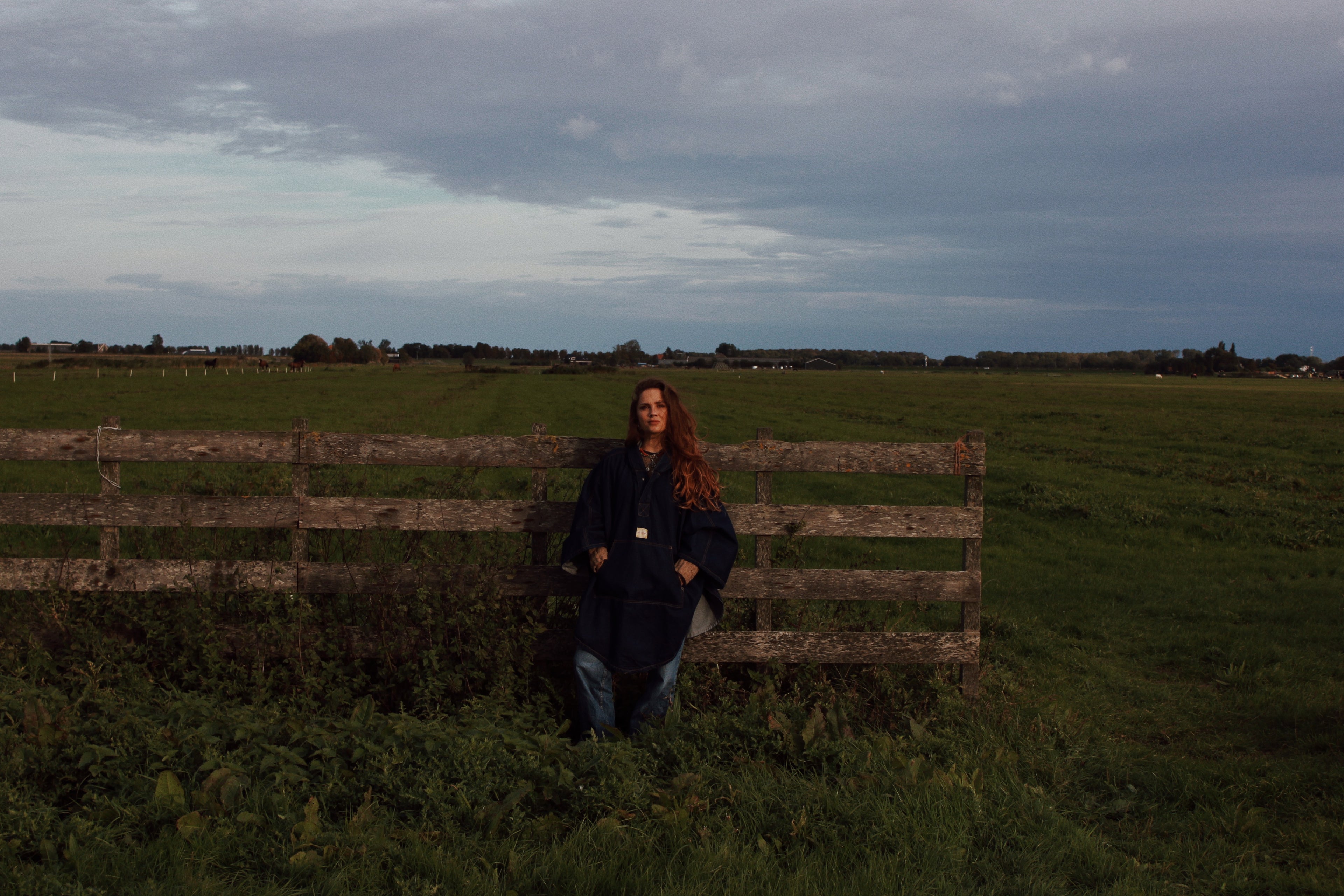 Green cotton poncho